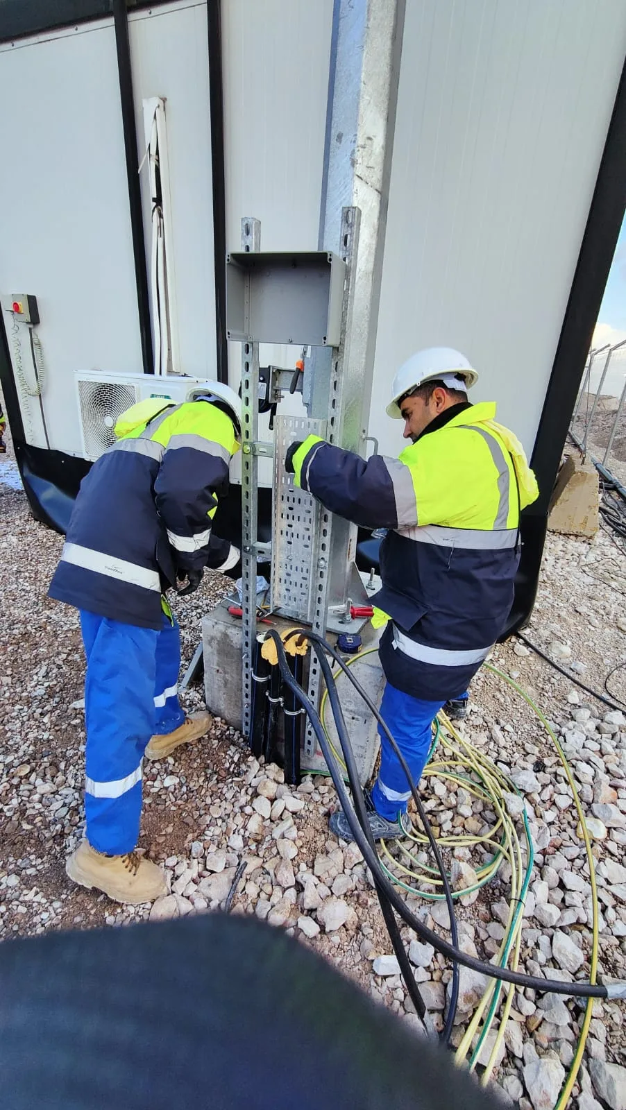 • All power cables successfully pulled, terminated, and connected to respective DBs and equipment.